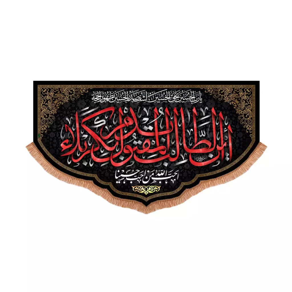 Enhance the spiritual ambiance of your space with our hanging banner, inscribed with the powerful phrase: "AYNA TALIB BADM AL-MUQTUL BA KARBALA" ("Where is the avenger of the blood of Karbala?").