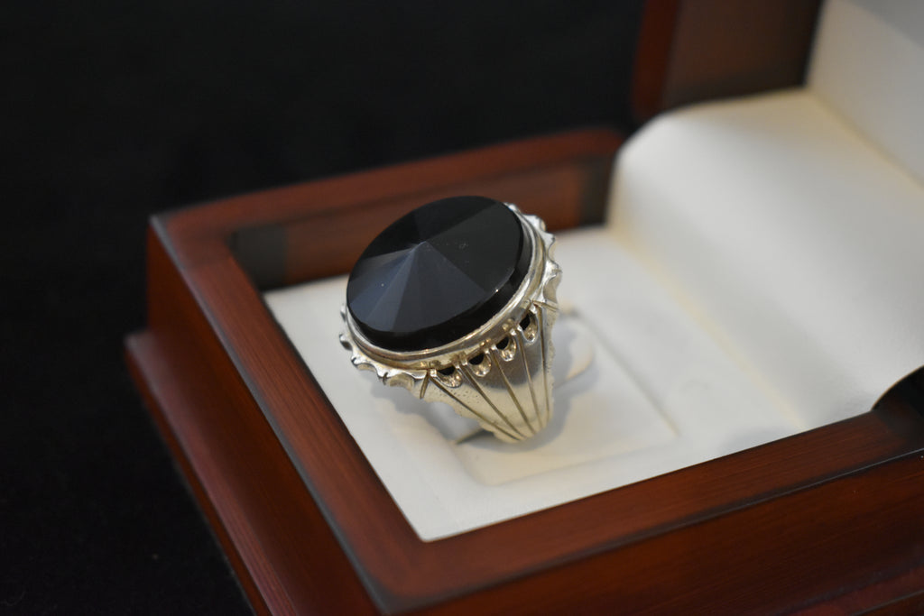 Perfect as a gift or a personal keepsake, the Black Round-Cut Aqeeq Ring is a timeless addition to any collection.