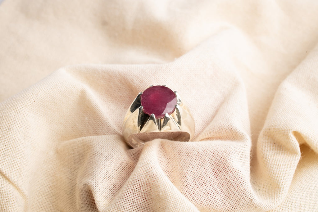 Introducing our Pink Yaqoot Sapphire Silver Ring, a graceful fusion of sophistication and natural beauty. This exquisite ring showcases an authentic pink Yaqoot Sapphire gemstone, celebrated for its enchanting rosy hues, elegantly encased in sterling silver.