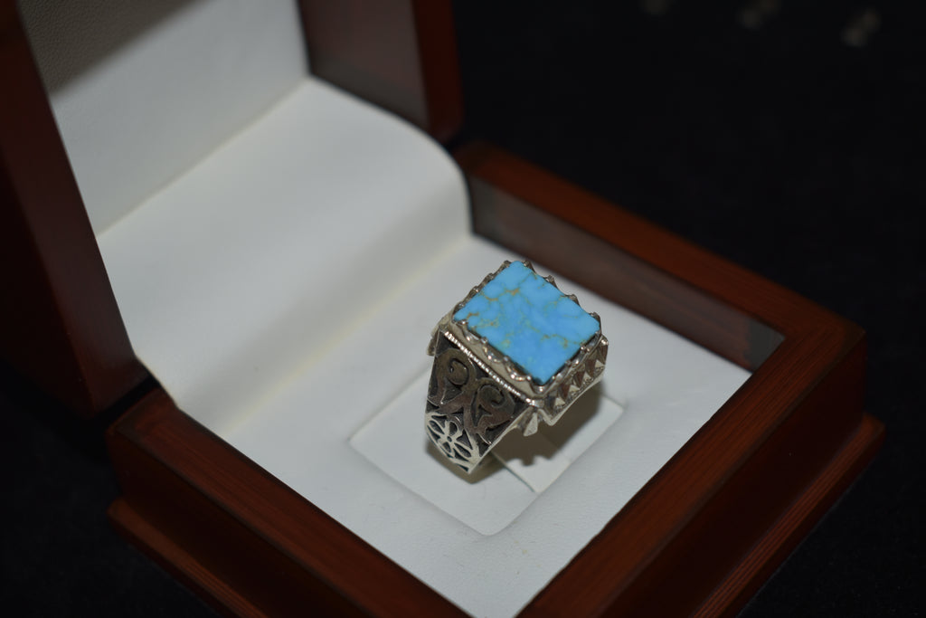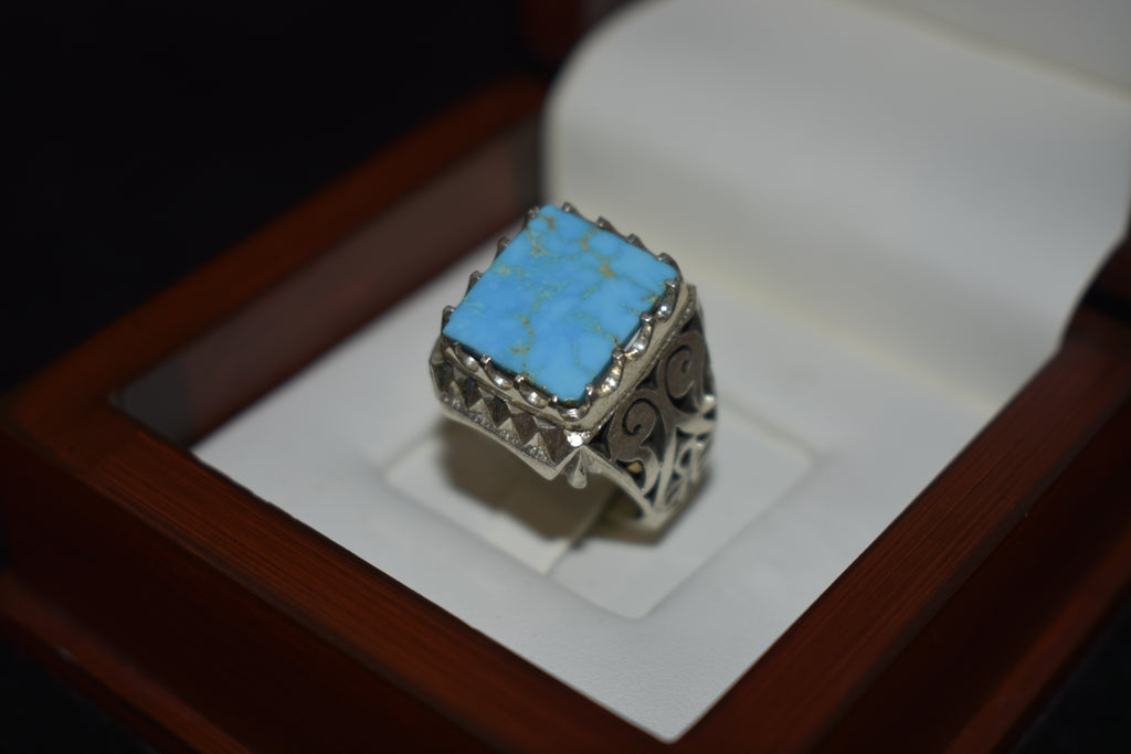 • Stone: Square-cut Neyshapouri turquoise (Feyrouz)