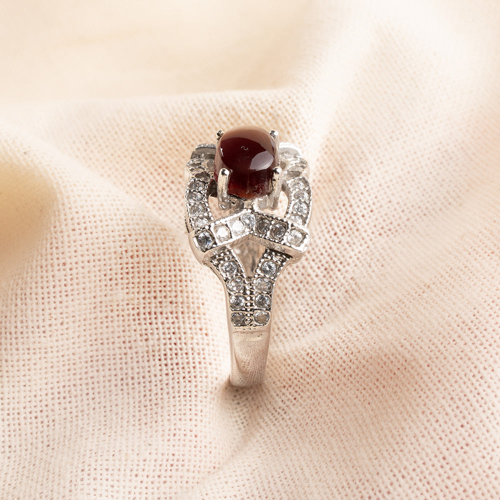 Introducing our Ladies' Aqeeq Silver Ring, a perfect blend of elegance and spiritual charm. This exquisite ring is adorned with an authentic Aqeeq gemstone, cherished for its captivating and distinct hues, delicately encased in sterling silver.